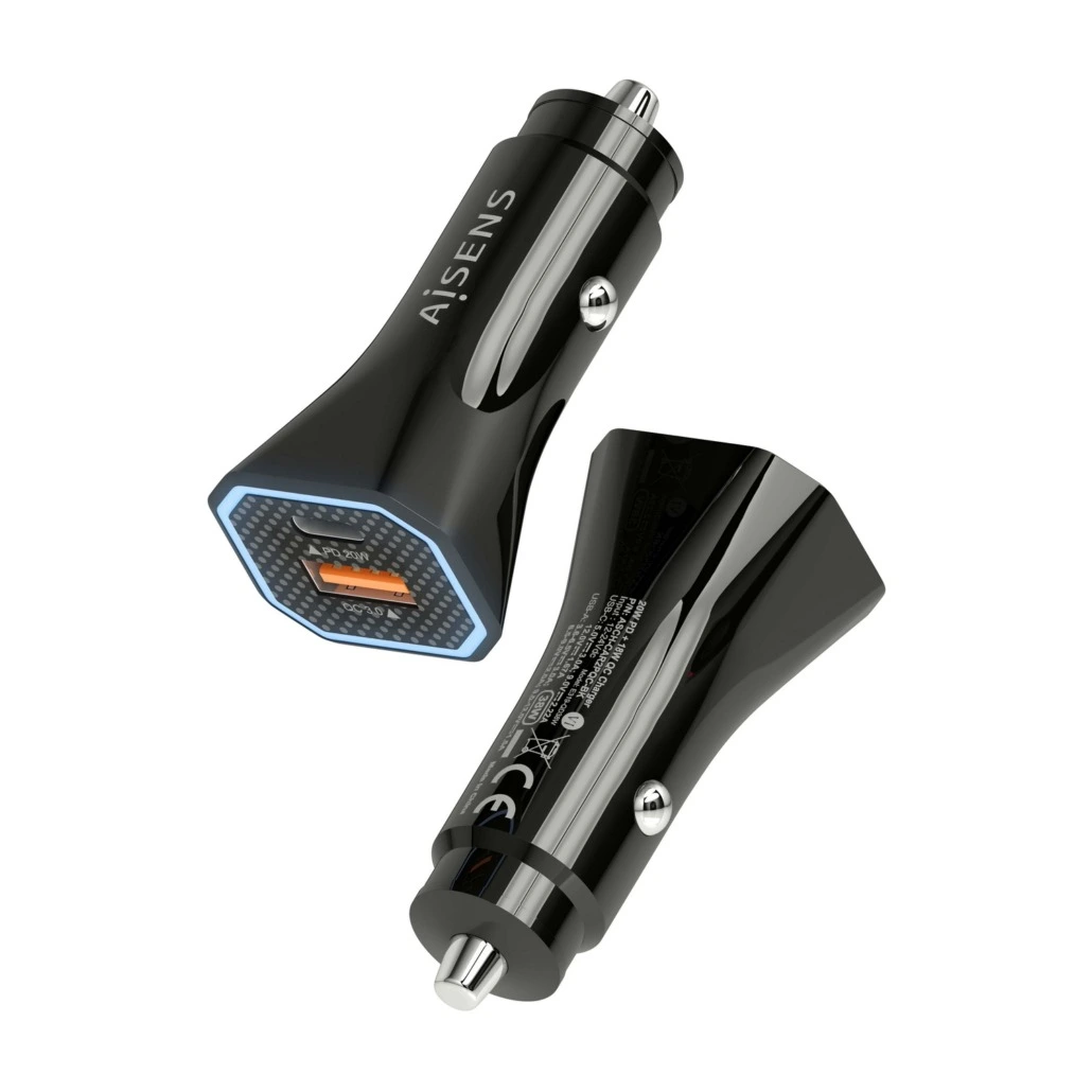 Cargador de Coche Ultra Rápido Aisens 38W – Doble Puerto USB-C (PD 20W) + USB-A (QC 3.0 18W) – Negro
